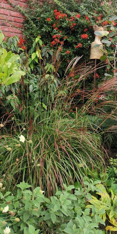 Hier blüht gerade ein kleines Miscanthus ‚Little Miss’. Es kommt aus dem Garten Menzel.