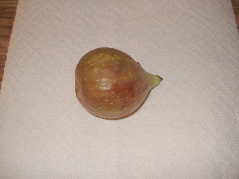 Reife Longue d'Aout Herbstfeige. Ich finde, dass sie irgendwie anders aussieht als sonst, viel runder und nicht so länglich, ob das am kühlen nassen Wetter liegt?