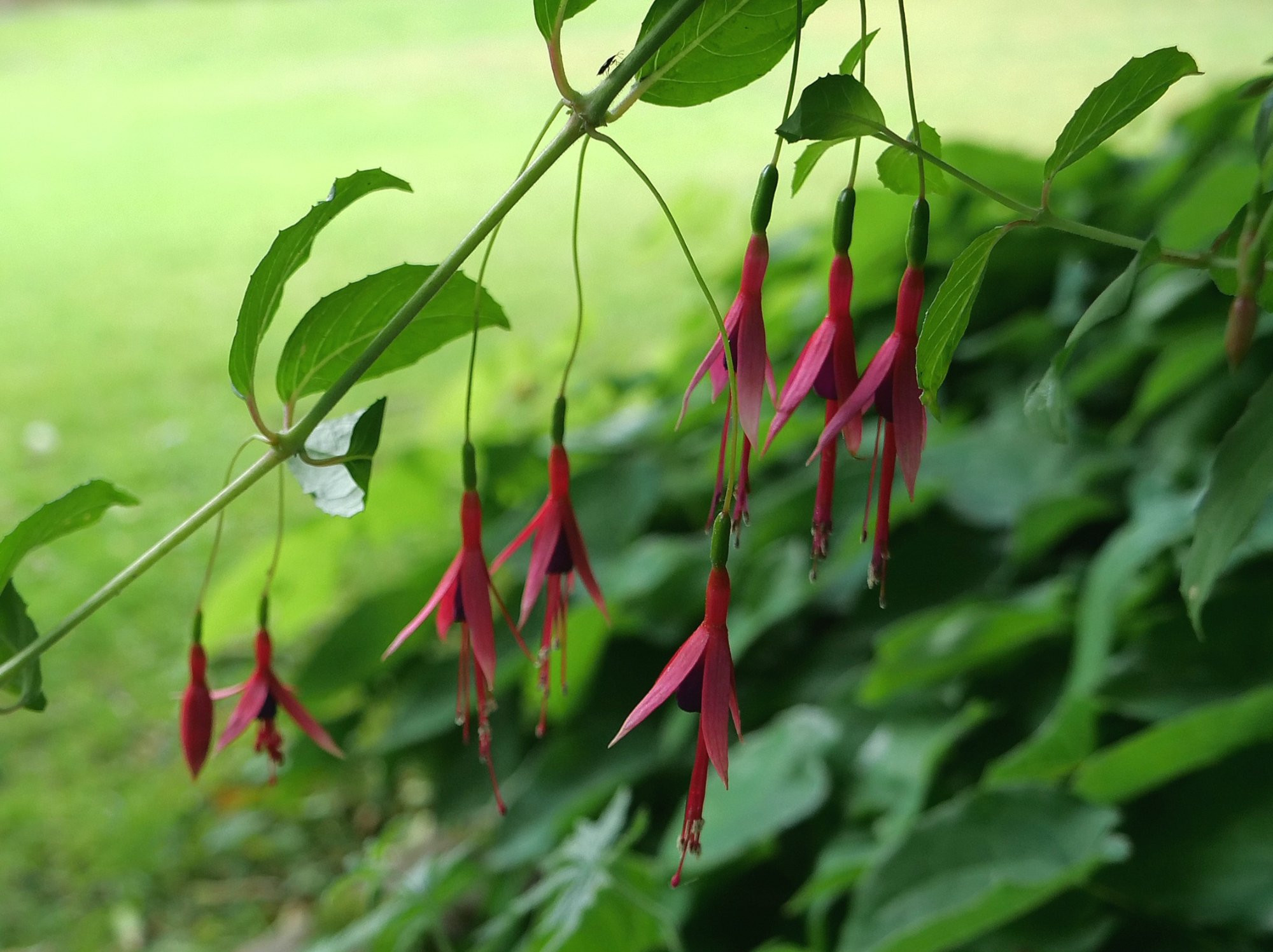 Ich habe mal wieder eine Lücke im Sichtschutz und diese beiden Fuchsien wollen die Lücke schließen, bis der eigentlich Strauch dafür groß und dicht genug ist.