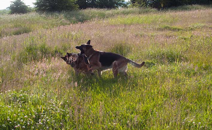 ja, einer "bahnt" den Weg, der andere läuft in der Spur.Hohe Wiese kitzelt