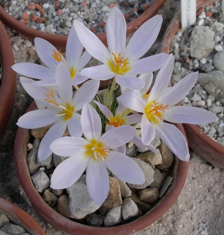 Crocus tournefortii steht unter Glas und hat sich dieses Jahr prächtig entwickelt.