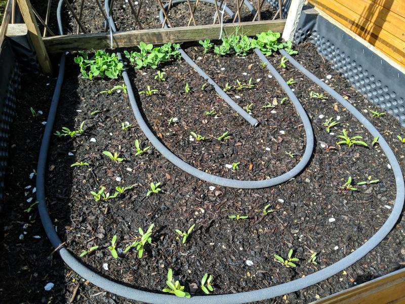 Auch die bunten Roten Rüben und Erbsen schauen schon neugierig aus der Erde.