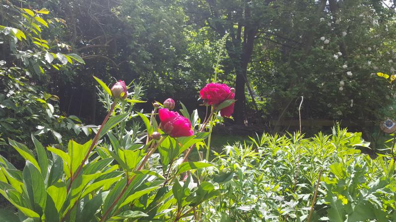 Da die Iris praktisch durch sind, hätte ich jetzt Zeit und Muße für die Pfingstrosen, aber auch die sind deutlich drüber. Nur an etwas günstiger Stelle gibt es noch ein paar vorzeigbare Blüten.