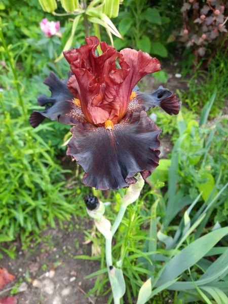 in der Mitte wie in jeder Pflanzung dunkle blaue oder rote und fast schwarze Iris. Sable und Sable Night. Bei letzterer sollte ich mich mal bemühen ein besseres Foto zu machen und ohne Wind.