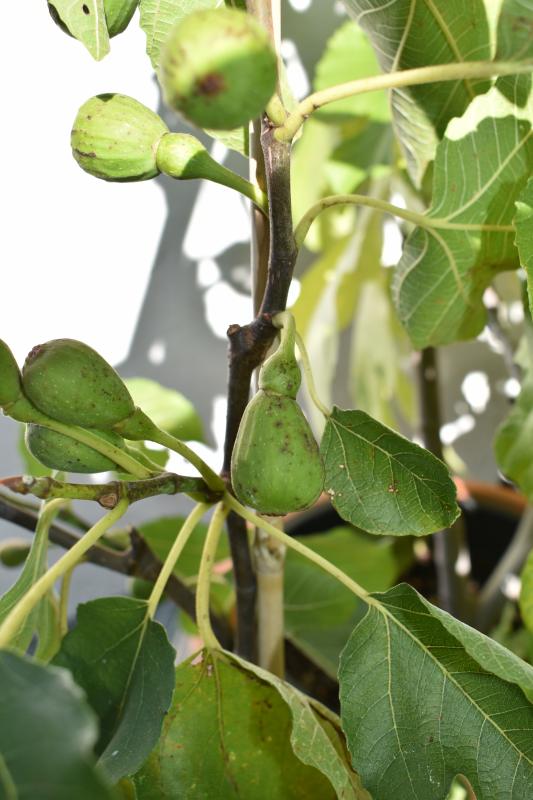 Die musste ich dieses Jahr auf der Nord-West-Seite parken mit sehr spät Sonne. Sie hat leider alle Feigen abgeworfen, ist aber trotzdem gut gewachsen. Im neuen Jahr hab ich für sie einen besseren Platz. Das ist irgendwie eine Feigenfreunden-Krankheit - man kauft immer weitere Sorten, auch wenn man keinen Platz mehr hat ;D