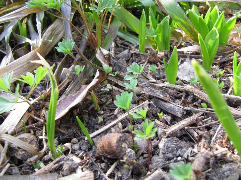 Gerade entdeckt: Corydalis shanginii ssp. ainae treibt munter aus. Die Kälte hat ihm also nichts anhaben können.