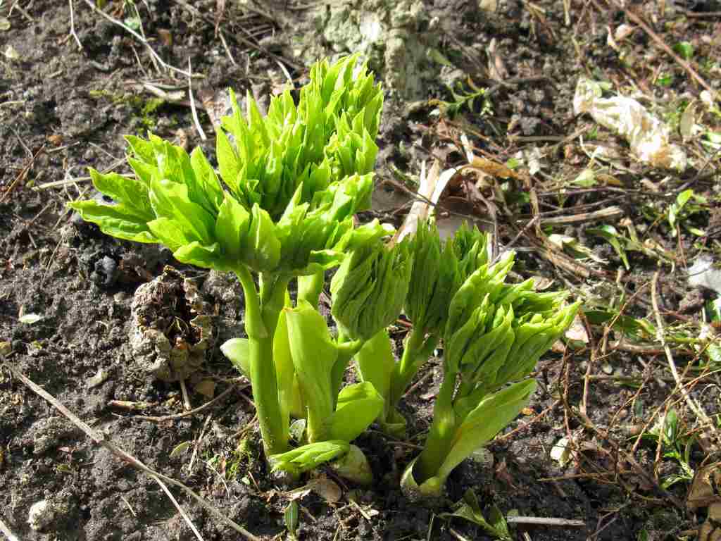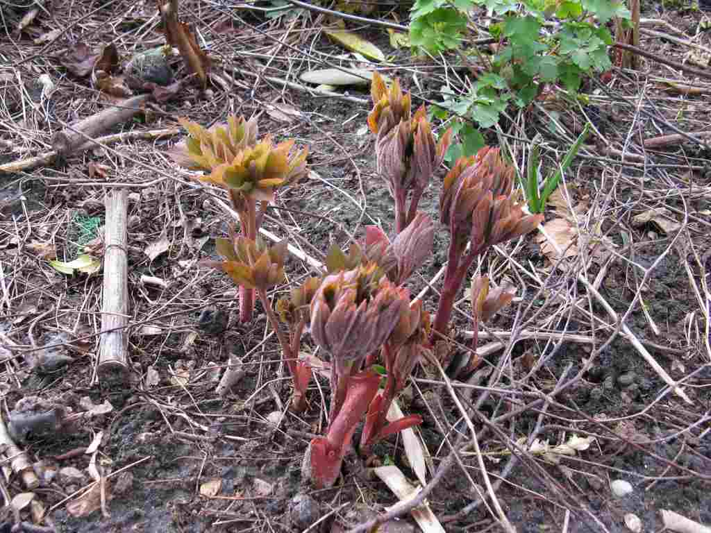 Paeonia daurica ssp. wittmanniana - schon der Austriebsieht gut und sie legt täglich zu.Bild