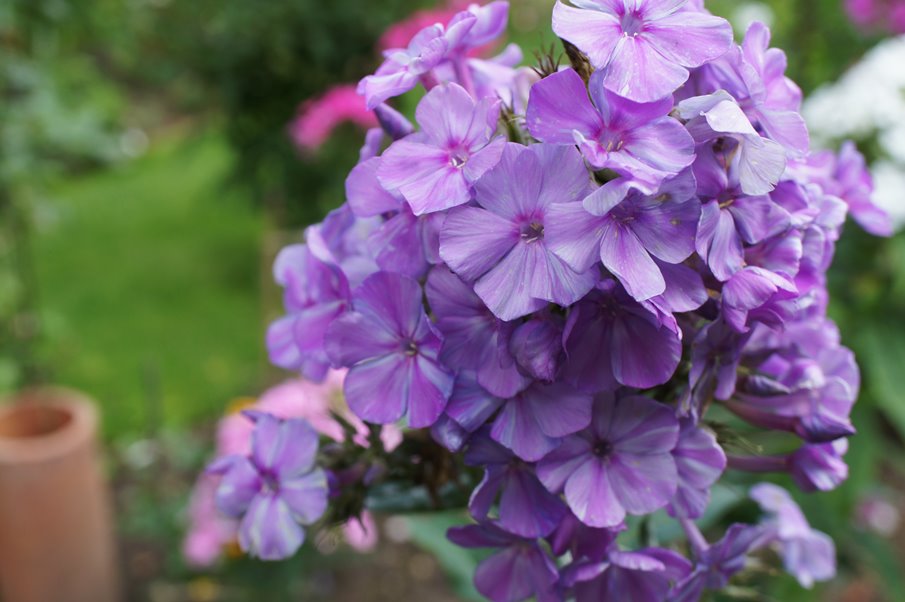 Schön ist der 'Fliederball' im Streifenkeid mit AugeInken, 'Amethyst' sollte eigentlich ein Purpurauge haben und weniger Weiß in der Mitte...aber langsam falle ich vom Glauben ab, was die Sortenechtheit bei Phlox betrifft
