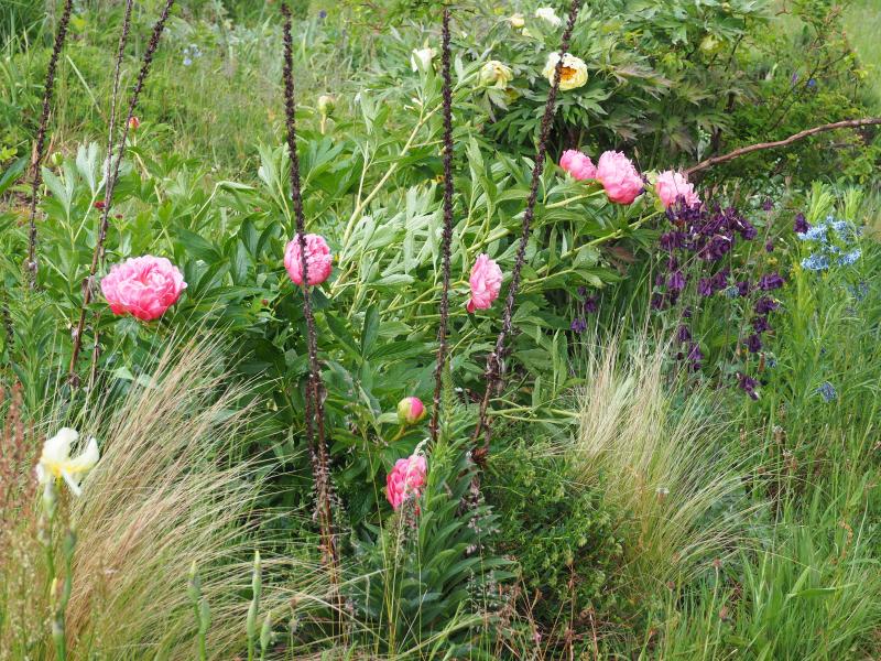 meine vom Laurent-Perrier's garden at the Chelsea Flower Show 2009 inspirierte Pflanzung. Nicht, dass ich mit dem Bild zufrieden bin. Aber die Pflanzung entwickelt sich gut und in die richtige Richtung. Die roten Päonien liebe ich ununterbrochen. Die Akeleien tun hier das, was sie sollen ganz von selber und auch Foeniculum vulgare 'Smokey' kommt jedes Jahr wieder und ich versuche noch mehr davon wachsen zu lassen.