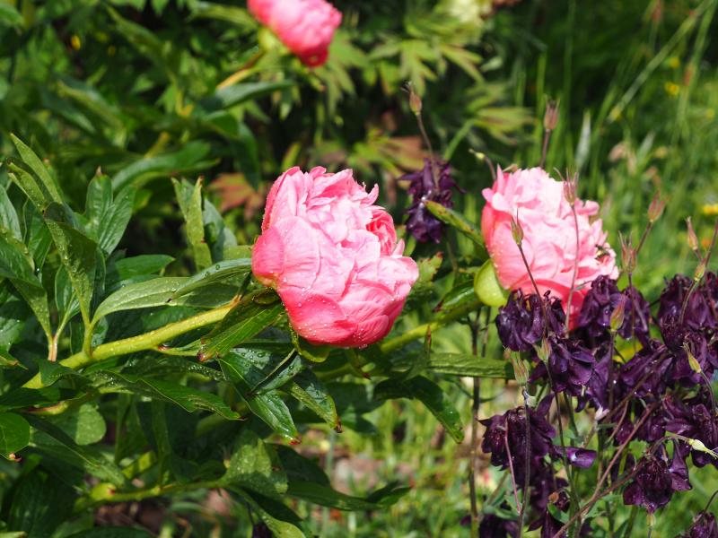 noch mal Pink Hawaiian Coral mit dieser dunklen Akelei, die aus der Nachbarpflanzung stammt.