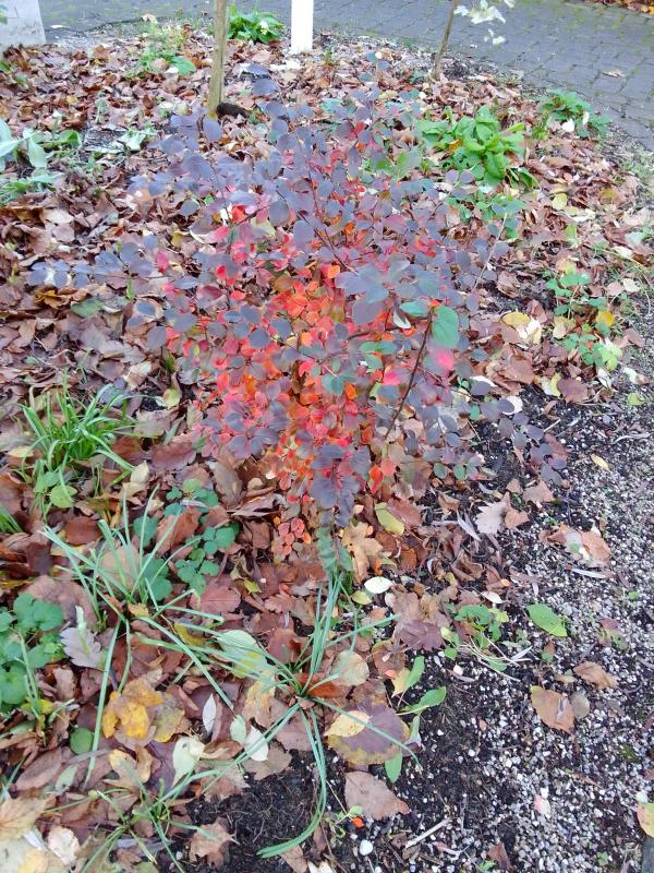 Aramisz Ulmen im Herbstkleid, das wunderbare 'Chaosbeet' von kohaku, Hans Herberts Zwergmispel im Laubbett und ViMs Hängebuche im Frost - alles