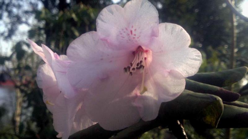 Gestern 22 C und weitere Rhododendron sind in der Blüte: R.thomsonii Balbirnie