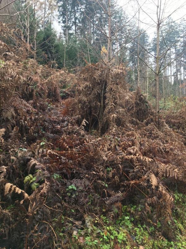 Wahrscheinlich kann diese Streu nur der Adlerfarn im Frühjahr problemlos wieder durch- und überwachsen.