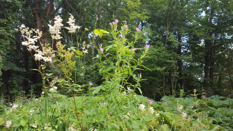 Rauhaariges Weideröschen, Epilobium hirsutum mit Mädesüß, Filipendula ulmaria