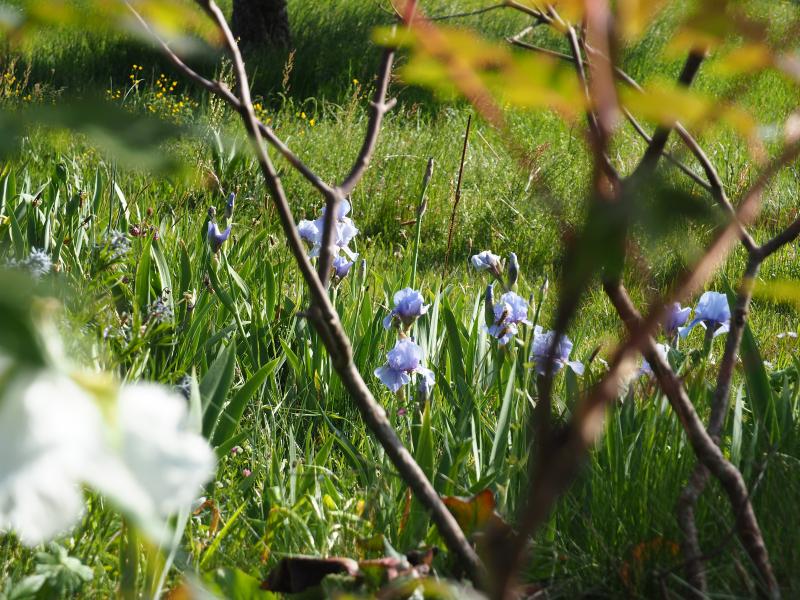 Iris aphylla, Carex humilis 'Hexe', Vitex agnus-castus. Den Bereich habe ich gejätet und auf dem Bauch liegend die Umgebung fotografiert.
