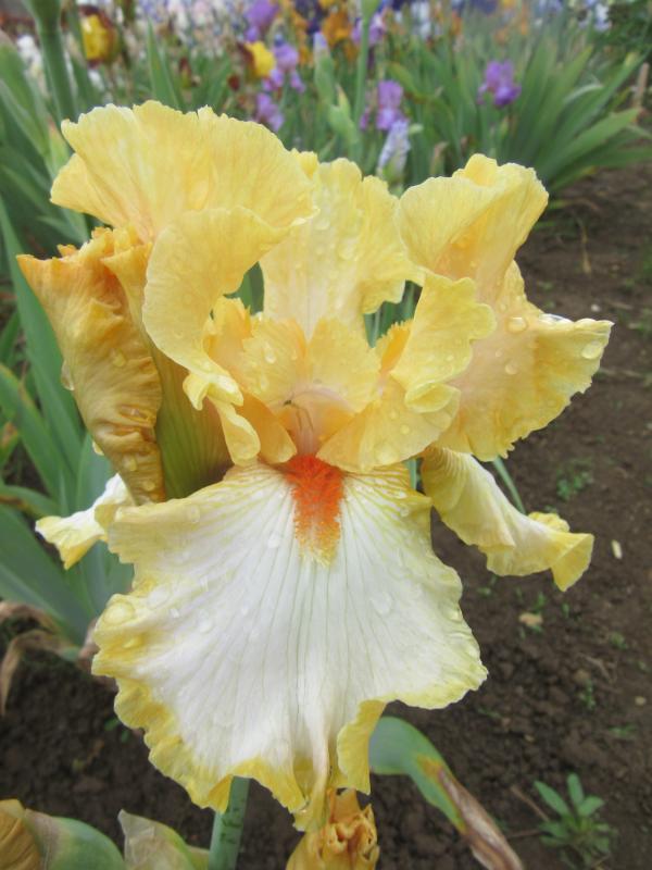 Iris,Du hast ja wirklich wundervolle Sorten, besonders die Burnt Toffee. Sollte da mal irgendwann ein Rhizom für mich abfallen, würdest Du mir eine große Freude bereiten. Hier sind nun meine ersten eigenen Sämlinge. Der erste ist zart blau, voll aufgeblüht fast weiß, der zweite gelb mit roten Sprenkeln: