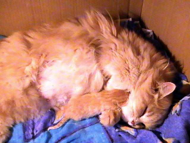Das war übrigens Mauzi, mit 17 verstorben und mein Flaschenkind. Er war der beste Freund von Peach und als er starb, war sie plötzlich ganz einsam :-[