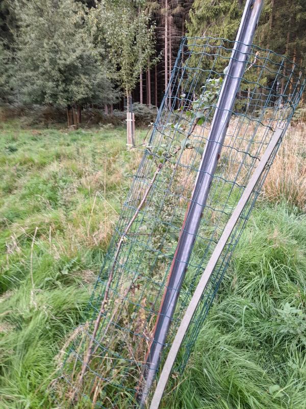 Nachmittags habe ich dann energisch auf Pralinenobst gearbeitet. Alle Bäume sind nun dauerhaft geschützt. Gut. Den hier gilt es zu fällen