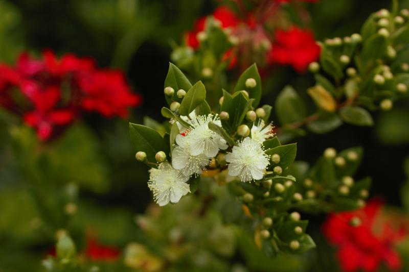 Luma apiculata beginnt zu blühen. Theorethisch könnte sogar ausgepflanzt werden, bei mir bleibt aber im Topf.
