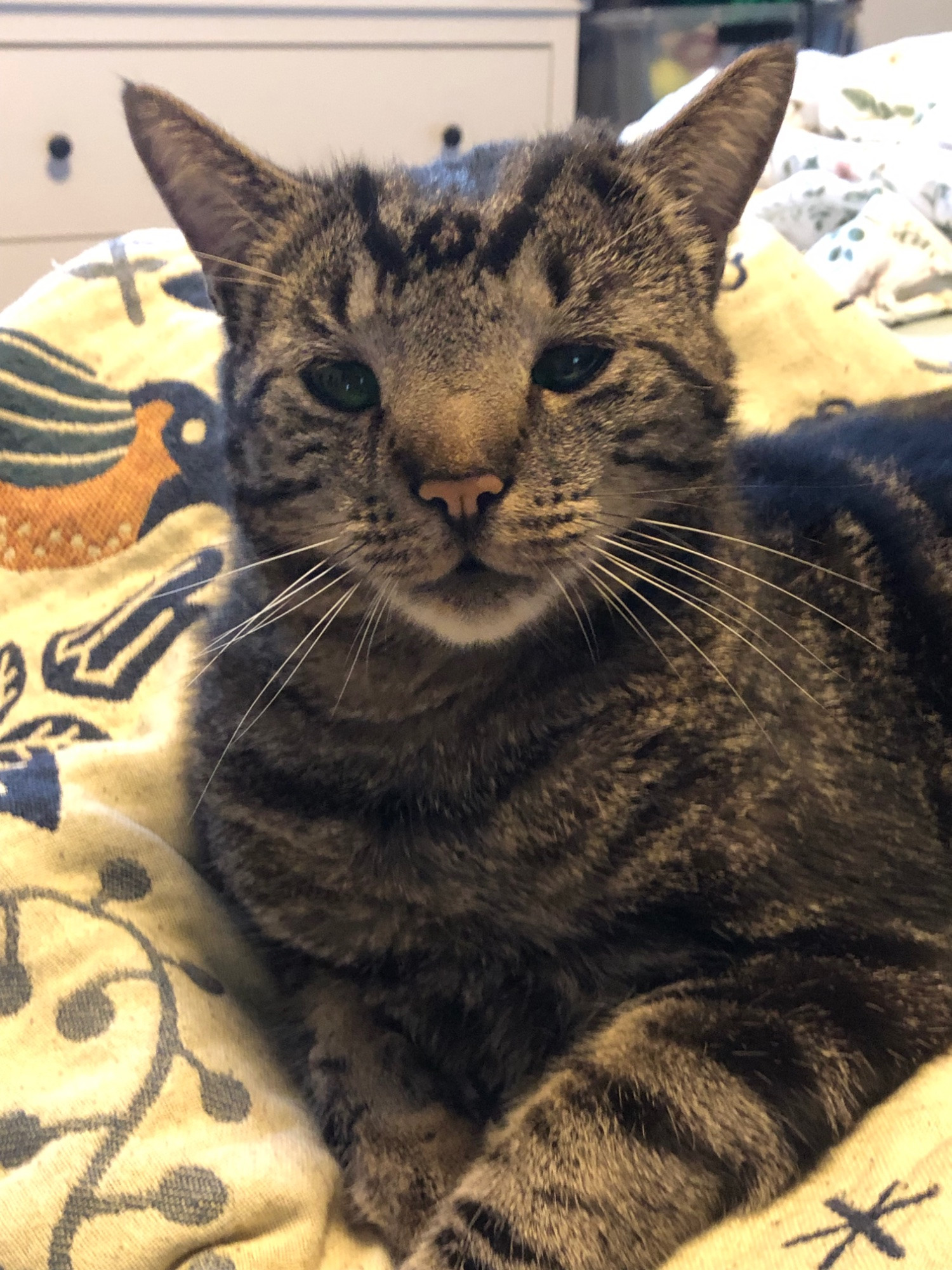 Paul ist krank und muss gleich zur Tierärztin. Er hat sich wohl vorgestern gekloppt und gestern eine eiternde Stelle auf dem Kopf. Ich hatte es gesäubert und geöffnet, damit alles abfließen kann. Paul bekam Hausarrest, so weit, so gut. Gestern Abend war der Nasenrücken schon geschwollen, heute Morgen alles dick, er hat ganz kleine Augen. Aber er frisst und will raus - was natürlich nicht passiert. Mit der Tierärztin hatte ich gestern Abend schon telefoniert, darum darf Herr Paul heute vorstellig werden. Das gibt wieder Drama im Auto. Man darf gespannt sein. Mein armes Baby
