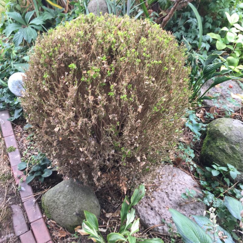 Ich habe zwei große alte frei wachsende Buchse - die sehen auch deutlich besser aus als die Hecken. Da habe ich durch den Schnitt das Elend etwas ans Licht gebracht. Es lässt sich aber gut rein spritzen, wenn die Hecken quasi offen sind - auch ein Vorteil.