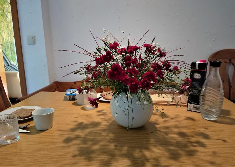 Als Sonderfall: Seit ein Mitglied des Haushalts gehbehindert ist, sind Sträuße zusätzlich zu einer liebevollen Selbstverständlichkeit geworden.