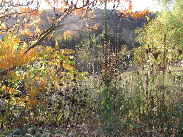 Gartenplaner, ich liebe Feuerwerk im Herbst. Davon kann ich noch ein bißchen zehren und der Winter scheint nicht so lang zu sein.Scabiosa, gutes Auge! Es ist 'Shaina'.