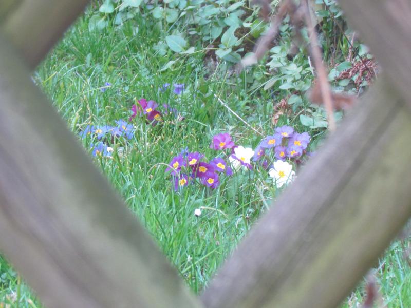 Ein Blick durch den Jägerzaun in einen (ehemaligen) Primelgarten. Dort hatte eine alte Dame über Jahrzehnte alles was sie so an Töpfen irgendwo bekommen hat gepflanzt, das Ergebnis waren mehrere Hundert auf ihrem doch recht kleinen Rasenstück. Dort gab es neben morbid-pastelligen Tönen auch, was selten ist, verwilderte Blaue. Leider habe ich den Zeitpunkt zum Retten nach ihrem Tod verpasst, jetzt ist nur noch ein winziger Rest in einer Ecke übrig. Und den zu bekommen ist quasi unmöglich.