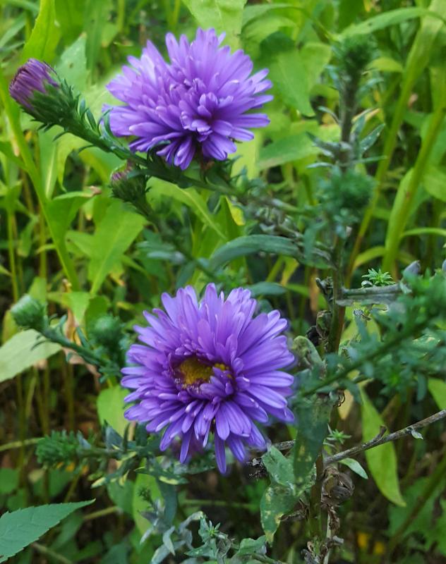 Und noch eine Glattblattaster, ebenfalls namenlos. Mittelhoch. Ich will sie gleich mal mit der von @Konstantina gezeigten 'Dauberblau' vergleichen. Sie wuchert nicht, ist aber wüchsig und fängt ebenfalls erst an zu blühen.