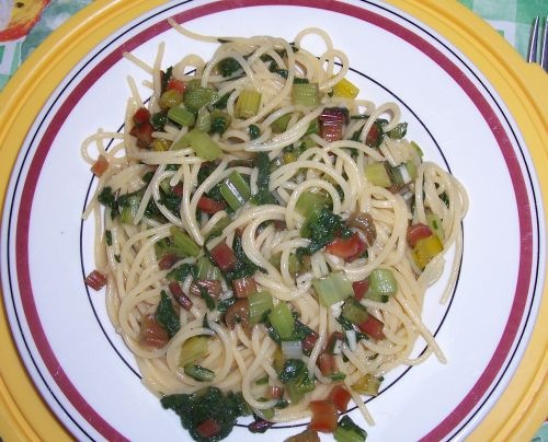 Nee, wie oben geschrieben, Spaghetti und klein geschnittener Mangold ins gut gesalzene Kochwasser, kochen, abgießen, in eine Schüssel, Knoblauch und Olivenöl dazu, fertig. Manchmal schneide ich auch noch ein paar rohe Tomaten dazu, ganz nach Laune.Das einzige was da eine seltsame Farbe hat ist das Kochwasser und das wird ja abgeschüttetOh - sehr schön - den Mangold in Stangen gedünstet und dann geschnitten und runtergehoben??