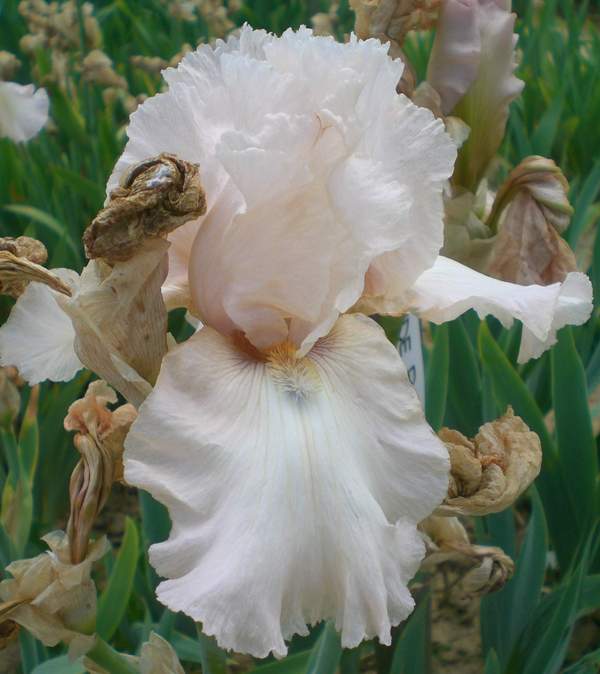 Anhand des Bildes ist eine eindeutige Identifizierung leider nicht möglich. Helfen würde auch eine Angabe, wie alt die Iris mindestens sein müsste. Hier eine kleine Auswahl infrage kommender Iris:- Corps De Ballet, Hager 1998 (Bild)- Halfway To Heaven, Niswonger 1996Gretchenfrage,(er)kennt vielleicht jemanddiese Iris