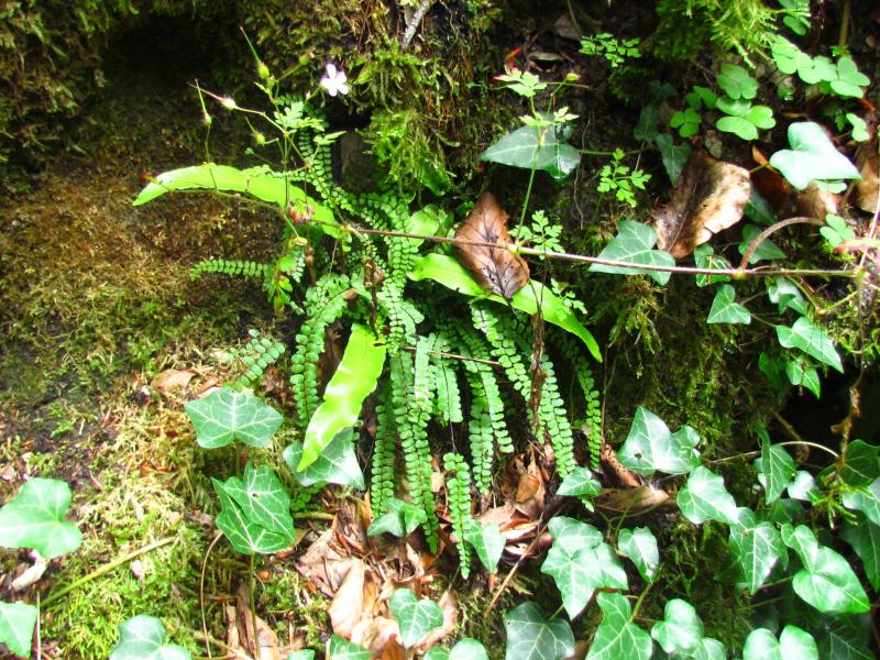 Zum Schluss ein paar Farne, an einer einzigen Stelle Asplenium trichomanes und Phyllitis scolopendrium, ich weiß, dass jetzt eigentlich beide Asplenium heißen, kann es mir aber irgendwie nicht angewöhnen.