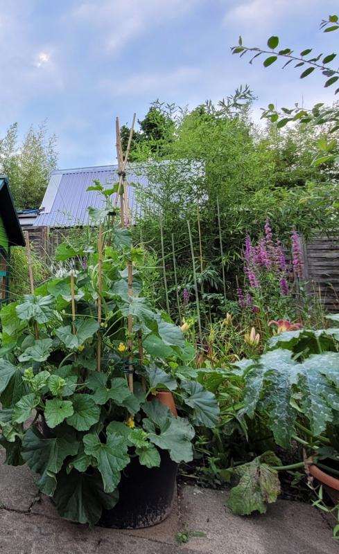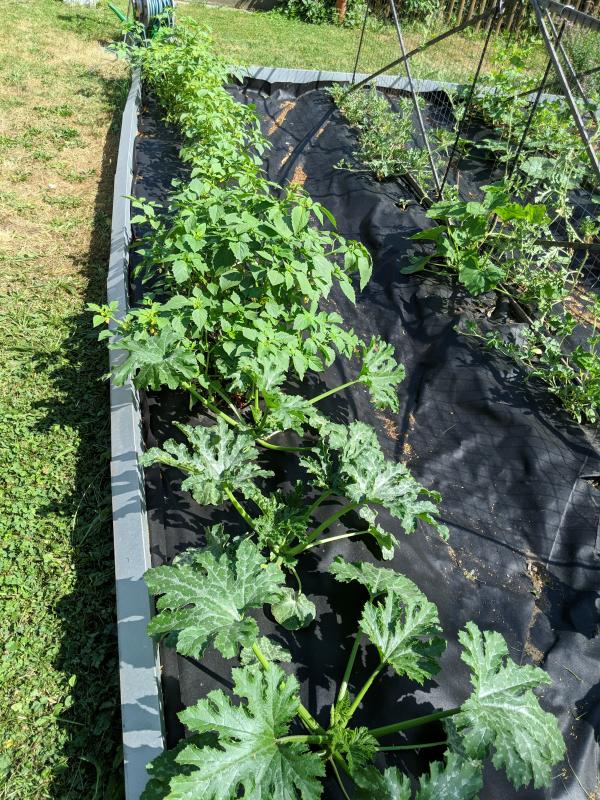 Die Markerbsen an dem Gerüst werde ich wohl bei Gelegenheit weg machen da kommt irgendwie nichts mehr nach, während die Zuckererbsenschoten am anderen Gerüst wieder einen neuen Schub Schoten nachgebracht haben. Bei den Kartoffeln hinten im Bild werde ich demnächst mal graben ob schon schöne Knollen dran sind.
