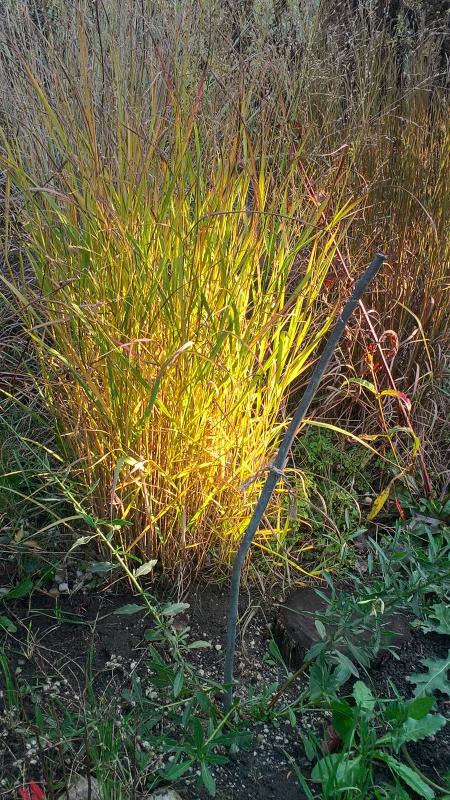 Heute hat ein rarer Sonnenstrahl Panicum Shenandoah zum Leuchten gebracht. Ja, eigentlich solle das doch rot werden, bei mir isses gelb.