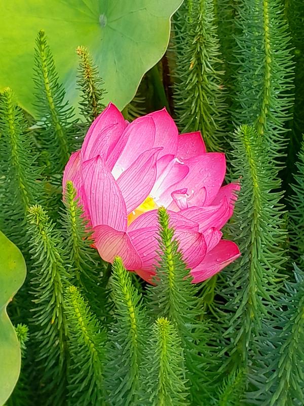 Hier warte ich auf die Blüte einer Wasserpflanze, die ich mal lieber nicht beim Namen nenne, sonst bricht hier noch die "o" oder "u"-Diskussion los. ;D Die Sorte heißt 'Myoryeon', sie lebt seit 2023 im Teich und überwintert auch darin: