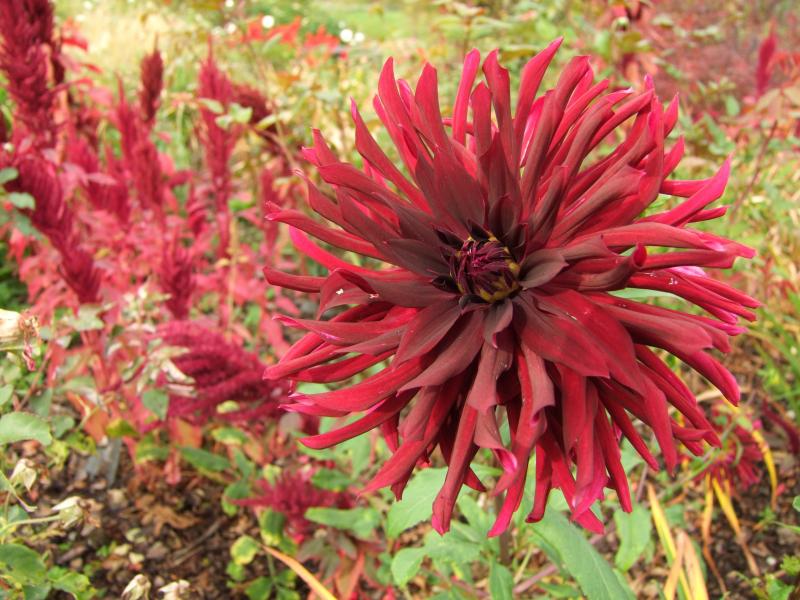 Wunderschöne Dahlien! Aber ich habe beschlossen, sie von Ferne zu bewundern. In den Beeten habe ich keinen Platz und im Kübel mögen sie nicht recht und bekommen schnell fleckiges Laub. Außerdem hat 'Hildepuppe' einen Pilz.