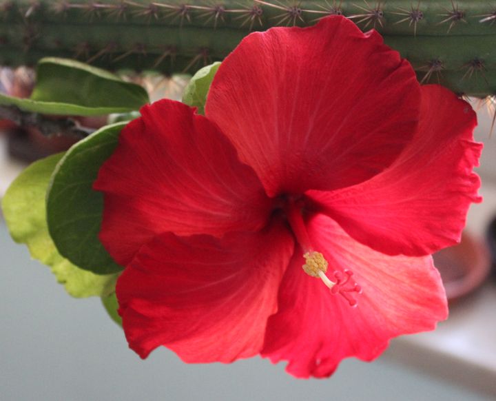 Lorraine, da hast du ja sehr schöne farbenfrohe Hibisken in allen Regenbogenfarben. :oWie man sieht, muß ich bald umziehen, wenn er so weiterwächst. Mein jetzt 18 jahre Jahre alter, aus einem kleinen roten Mini-0815-Hibiscus gezogener Hochstamm sprengt im Winterhalbjahr irgendwie immer mein kleines Wohnzimmer. ::) Ich hoffe, bald ist wieder Mai und er kann wieder raus auf die Terrasse.Nachdem ich ihn vor 4 Wochen von draußen ins warme Haus geholt habe, hat er gerade einen Blütenschub.