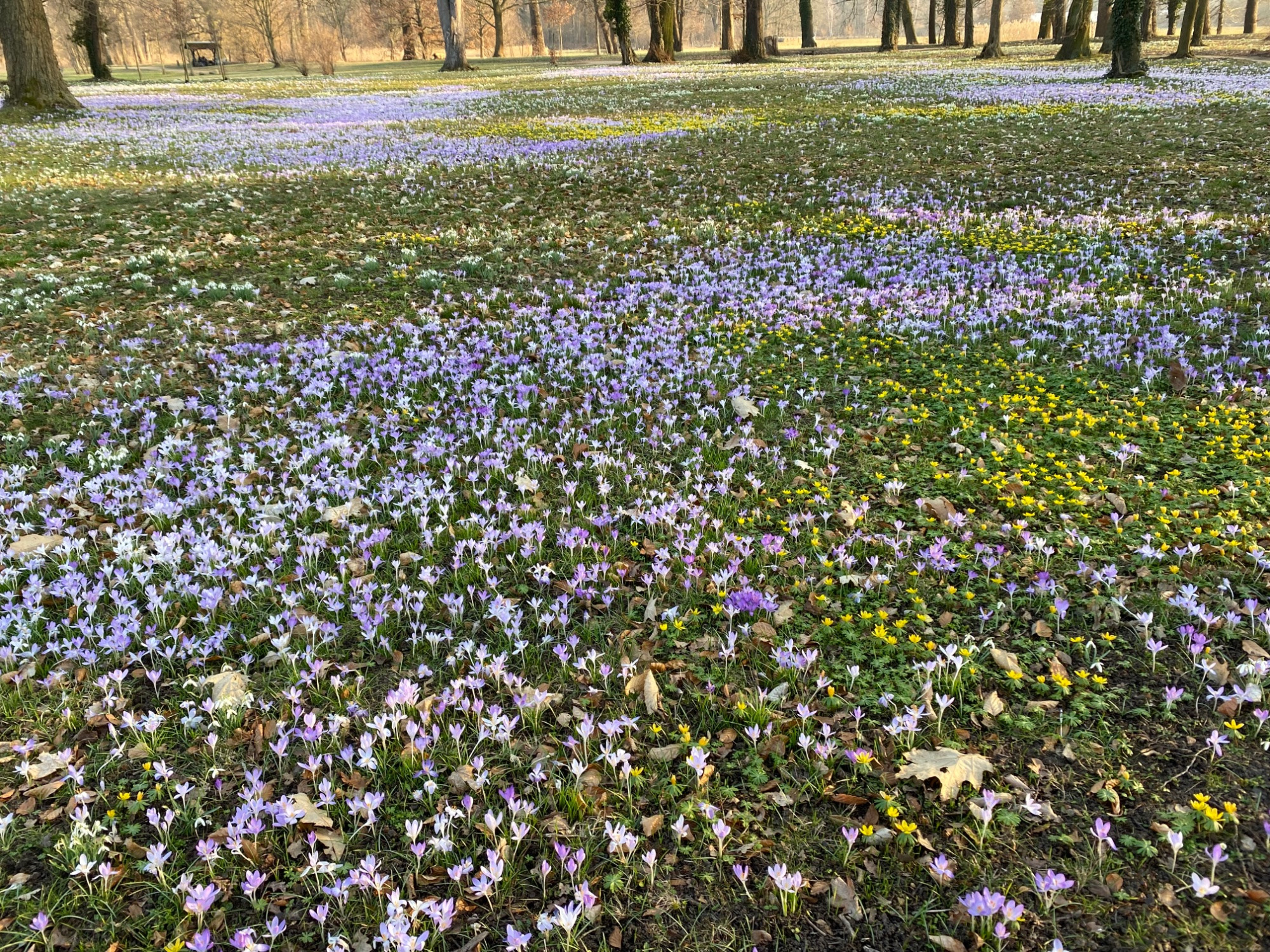 Wer vorhatte, mal zu kommen, sollte es noch an diesem Wochenende machen. Die diesjährige Blüte hat auch mich überrascht. Offensichtlich haben abertausende Krokus- und Winterlingssämlinge ihre Blühstärke erreicht. Außerdem setzt die Märzenbecherblüte im Privatgrundstück ein. Man kann über den Zaun gucken.