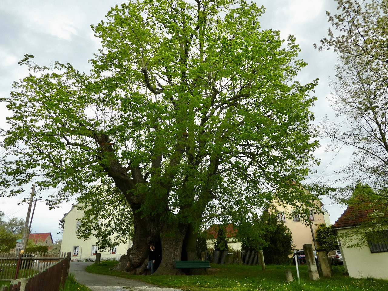 Von Weesenstein ist es nur noch ein kleines Stück Weg bis zur Schmorsdorfer Linde. Sie wurde im letzten Jahr von der Dendrologischen Gesellschaft zum Nationalerbe-Baum ausgezeichnet und ist besonders mit dem zarten Frühlingsgrün ein wirklich beeindruckender Baumgigant.