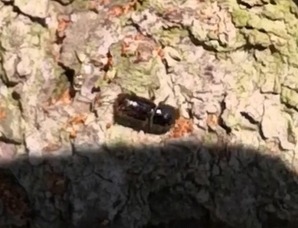 Leider steht der Fichtenstumpf noch. Und zack haben es die Borkenkäfer mitbekommen und machen sich über diese her.
