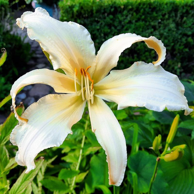 Bei mir blüht heute Heavenly Angel Ice zum ersten Mal. Leider drehen mir die Blüten den Rücken zu und ich musste zum Fotografieren extra ins Beet klettern. Richten Taglilien alle ihre Blüten in Richtung Süden?