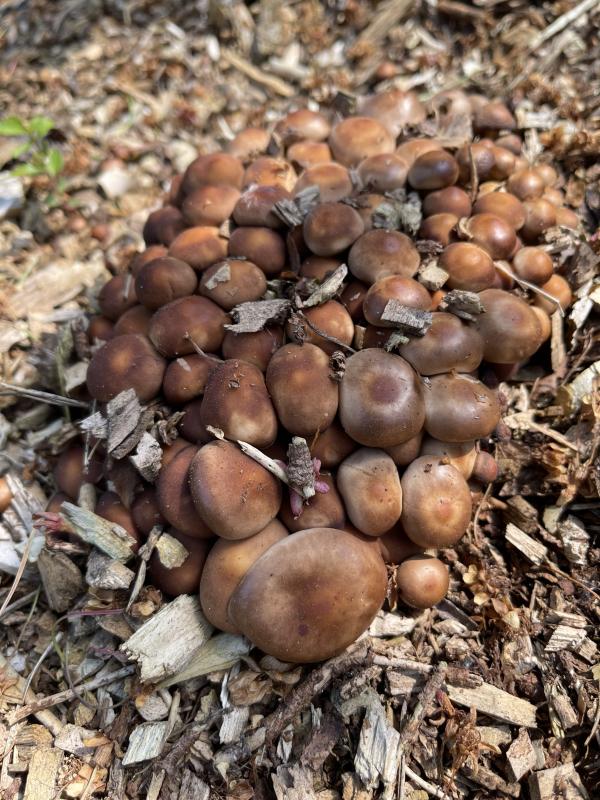 Welche Pilze sind das? Wachsen auf einem Schredderhaufen (Nadelholz)