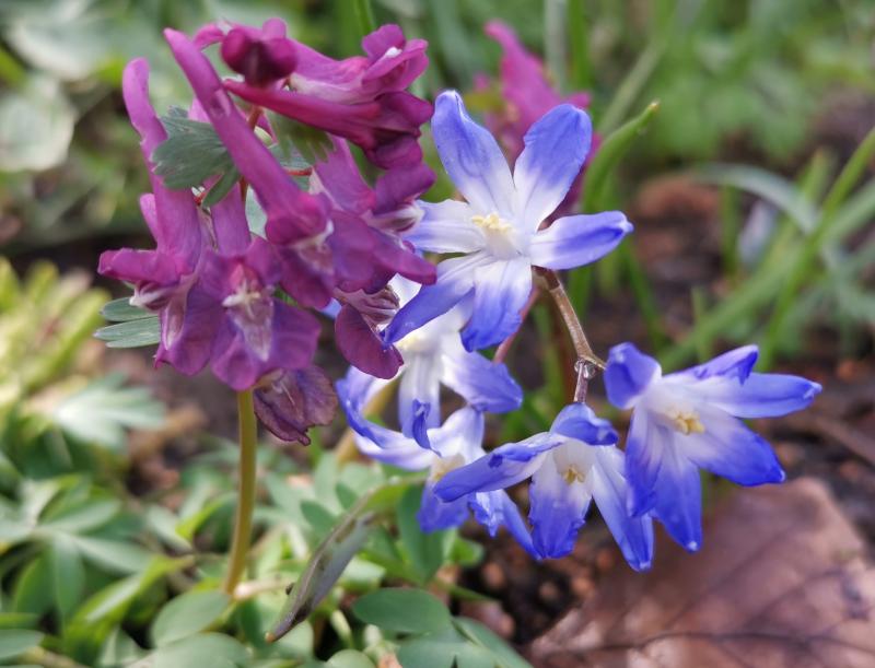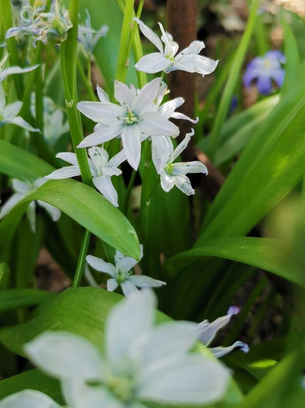 Ich bin gestern bei Sonne durch den Garten gegangen und mein Mann hat ein paar Fotos von den Scillas gemacht. Ich kann sie nicht richtig einordnen, vielleicht sind aber auch schon Hybriden dabei.