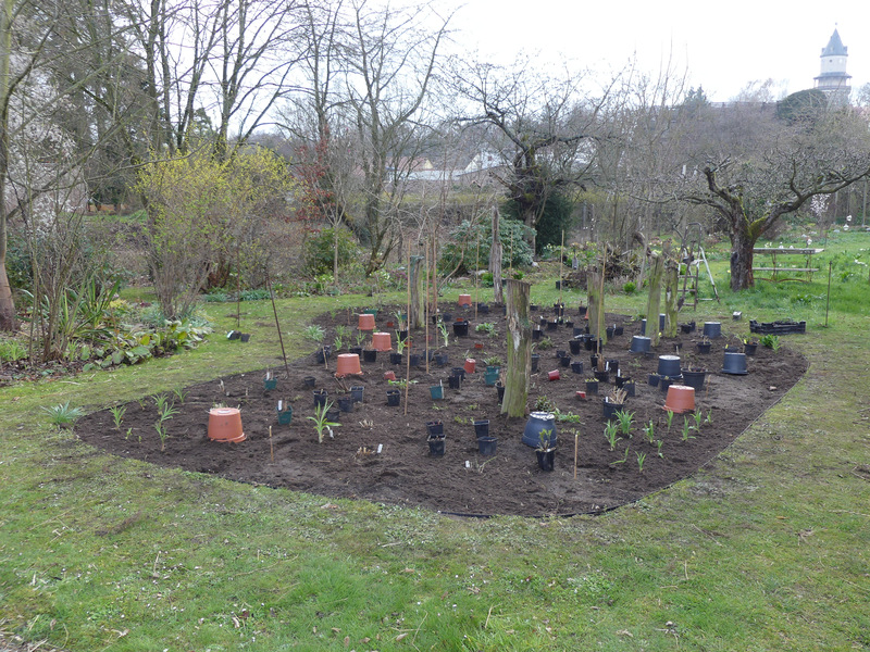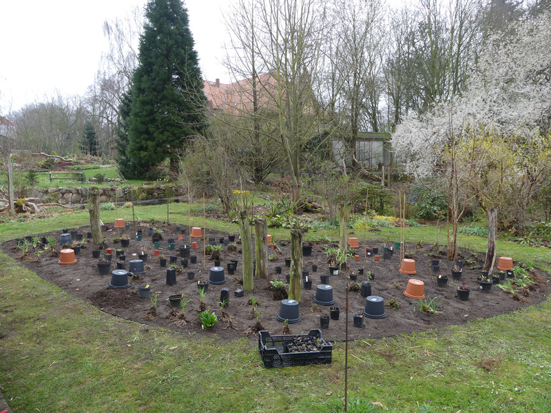 Was sich schon abzeichnet: Es werden eine Menge geborgene Stauden übrig bleiben. Was ich bräuchte, ist ein großes Zwischenbeet. ::)