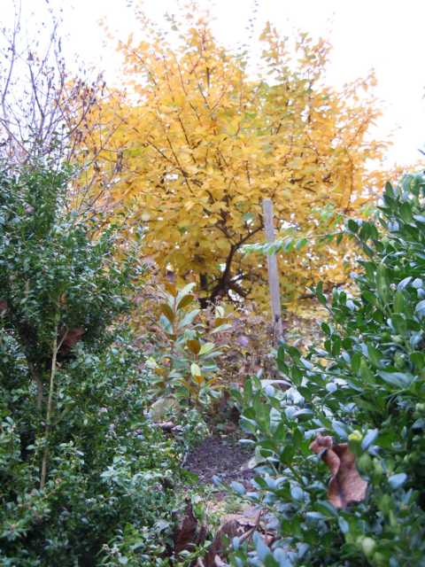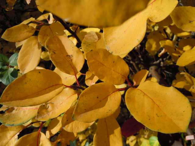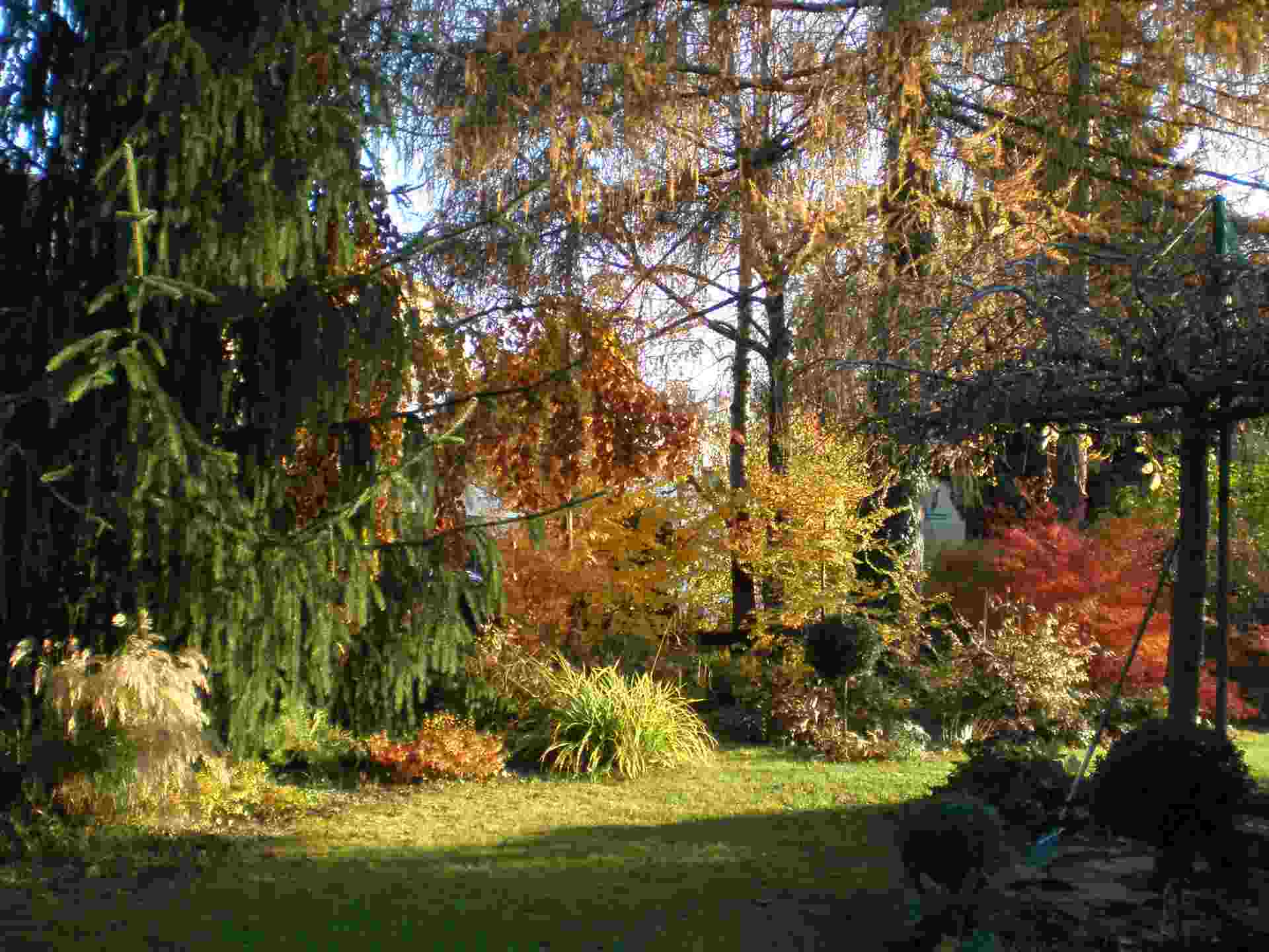 Die Orange-, Braun-, Gelb- und Rottöne in diesem Gartenbereich, quasi der Vorgarten (ca. 100m2), sind "geplant" und kommen jedes Jahr intensiv und zuverlässig.rötliche und orangefarbene Blüten: Chrysanthemenrötliche Blätter Herbstfärbung): Miscanthus, Cornus florida, Cornus kousa, Viburnum bodnantense (dieses Jahr besonders intensiv braunrot), Berberis thunbergii (die ganz normale grüne Form), Aster n.a. (zuverlässige Gelb-Rot-Färbung jedes Jahr), Cotinus coggygria (grüne und rote Form), Euphorbia polychroma, Paeonia lact., Sorbus aucuparia, Nadina domestica, Lagerstroemia indica, Viburnum plicatum...Rote Früchte: Berberis thunb., Malus hybr. (Sorte muss ich mal nachschauen), div. Rosen, Nandina domestica, Ilex aquifolium, Sorbus aucuparia Samenstände: Sedum 'Herbstfreude'