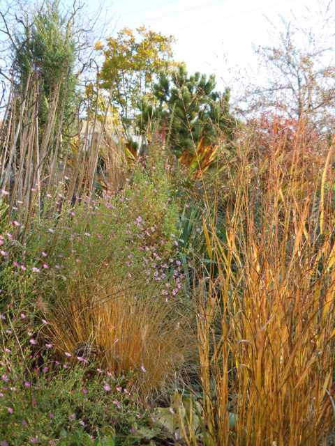 Jo, ist die Dominanz von Farbtönen im Braun-Rot-Orange-Bereich alljährlich stabil und damit bewusstes Gestaltungsthema oder nur witterungsbedingt in diesem Jahr so markant?Interessant aber in jedem Fall; mein Garten bietet derzeit eher das Gegenteil. Es überwiegen klar die Pastelltöne. Nach kräftigem Rot müsste ich eine Weile suchen.