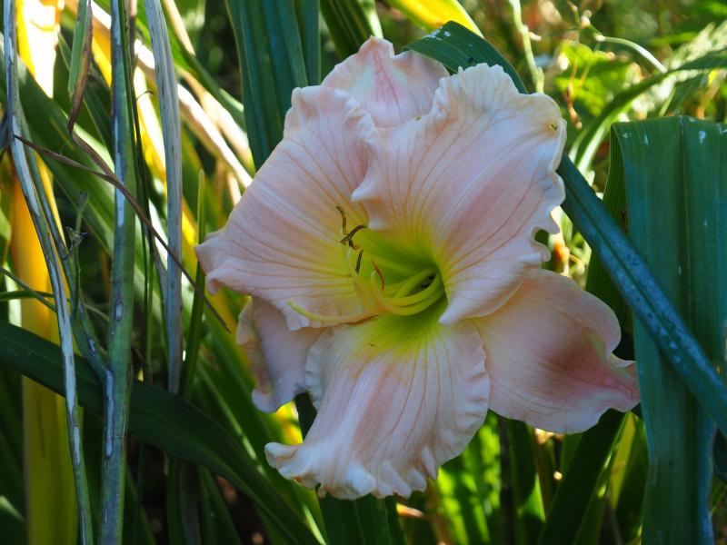 Und zum Vergleich dazu eine späte rosa Sorte mit leichtem Rüschenrand - farblich deutlich schlechter (zumindest hier in meinem Garten): Marchioness