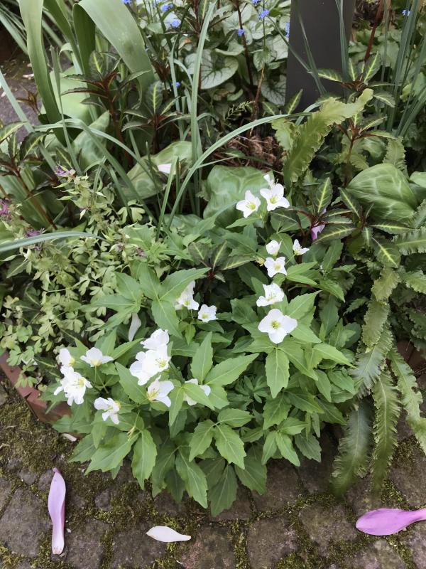 Ein gefülltes Adonisrösschen, ein paar Primeln und Scharbockskräuter, die ich mit Minihosta kombinieren wollte. ;)