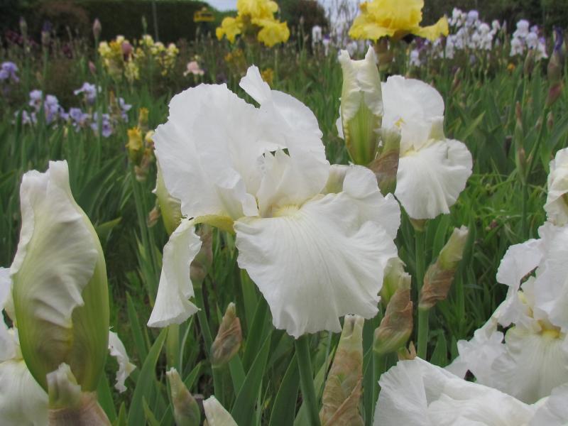 Das ist doch 'Morgendämmerung' oder was meint Ihr? Ich hatte vor zwei Jahren fast alle Iris nach einer wirklich enttäuschenden Saison aufgenommen, die Rhizome gut gesäubert, und wieder eingepflanzt, einige allerdings erstmal zwischengeparkt - wie man sieht im Gemüsegarten. Sie legten gut zu, aber fast die ganze Irisblüte fiel letztes Jahr den Maifrösten zum Opfer. Dieses Jahr hat es reichlich Knospen und fast keine Schilder mehr. Die Krähen haben wirklich ganze Arbeit geleistet, Winter muss langweilig sein.