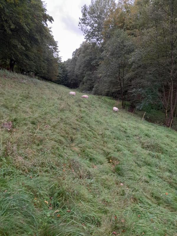 Von gestern habe ich nur ein vergleichsweise langweiliges Bild: Schafe auf dem Rückzug. Die Fläche ist schon einmal durchbeweidet- Jetzt halte ich sie noch bis Sonntag auf der Fläche, damit Lena und ich die große Gruppe dann auf dem Teufelspfad einpflegen. Der wird voll wie nie :-X WEnn der fertig ist, folgt der traurige Abschied für insgesamt 10 Schafe. Fast alles Alttiere. Sprich: Meine Tiefkühltruhen sind dann voll.